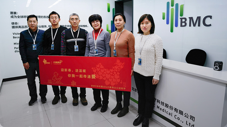 At BMC, our commitment to "family cares" extends beyond our products and into active engagement in social welfare initiatives. We consistently demonstrate our social responsibility through tangible actions, contributing significantly to areas like aiding pneumoconiosis patients in partnership with "Love Save Pneumoconiosis", supporting patients with special needs, participating in global epidemic prevention, and providing disaster relief. As of December 31, 2024, BMC has cumulatively donated over 19 million RMB through government agencies, medical institutions, and charitable organizations to individuals, families, and social groups in need of respiratory health support, safeguarding the respiratory well-being of countless households.